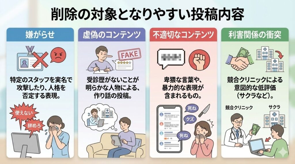 まずは、どのような内容が削除対象となり得るのか、その判断基準を整理していきましょう。📝