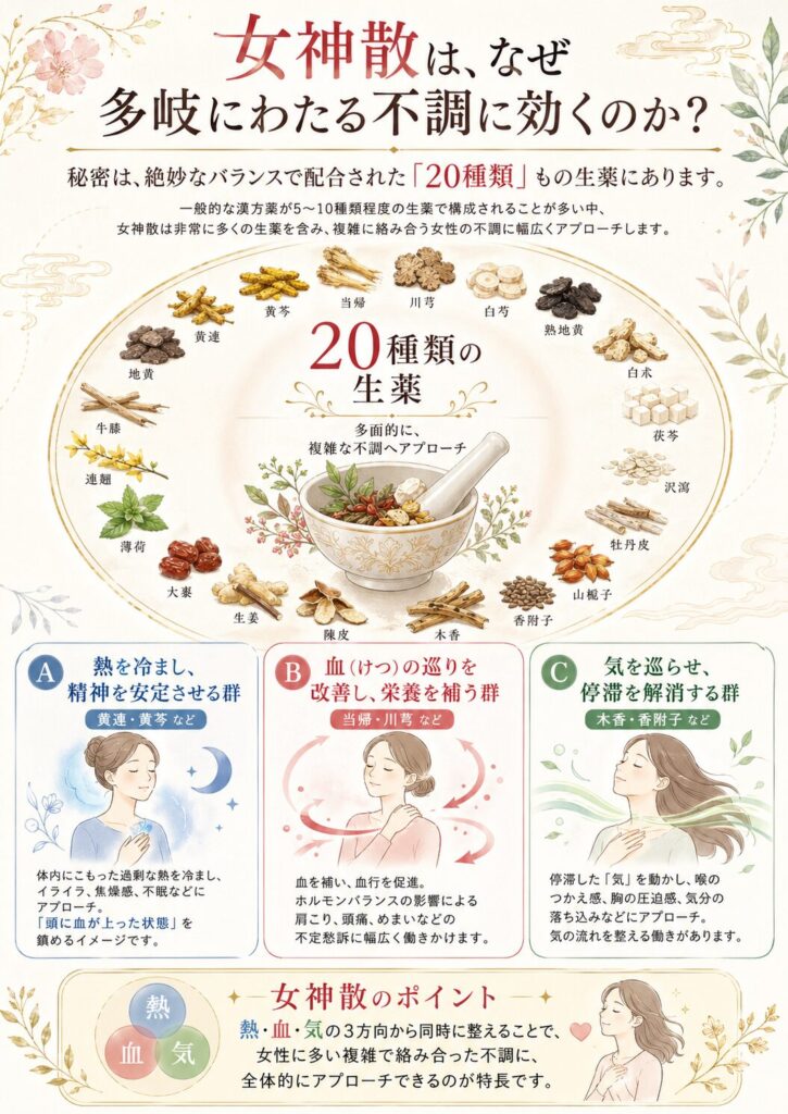 女神散がなぜこれほどまでに多岐にわたる不調に効くのか。